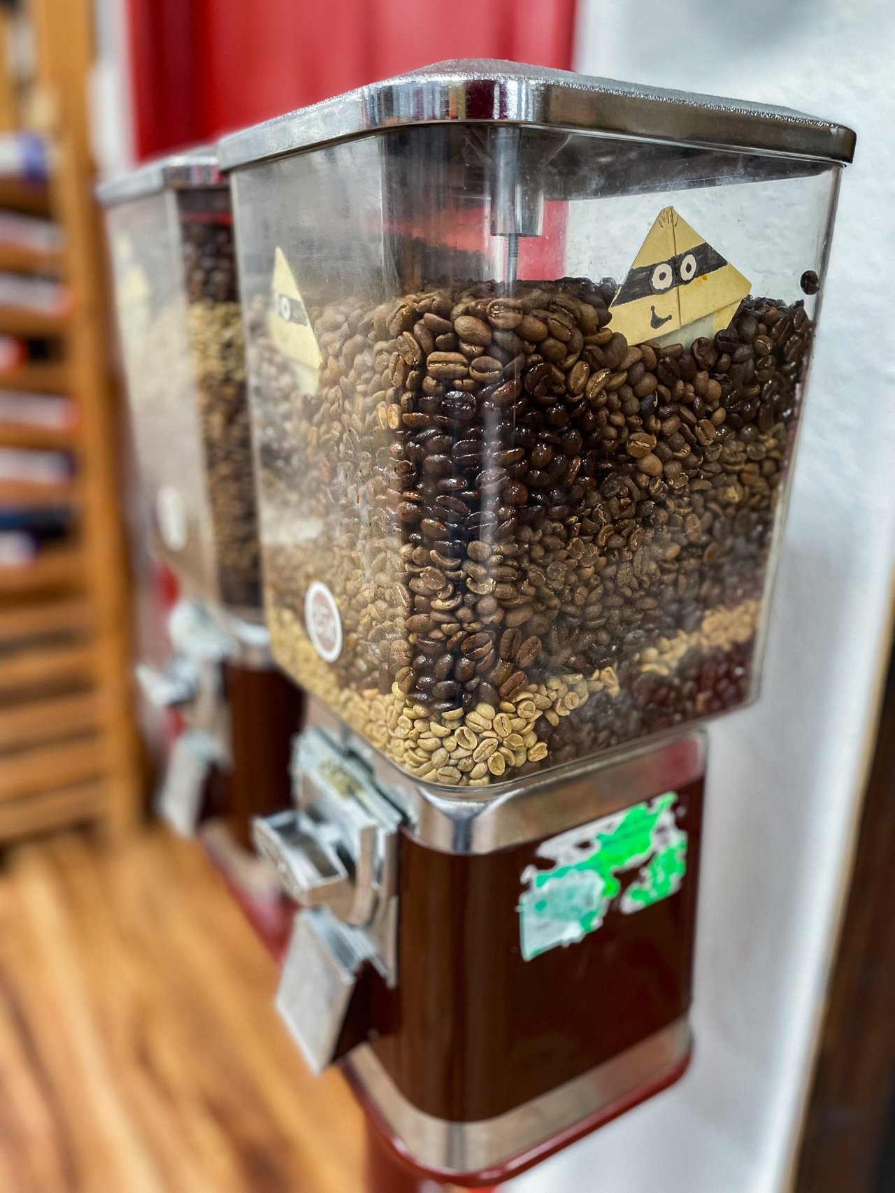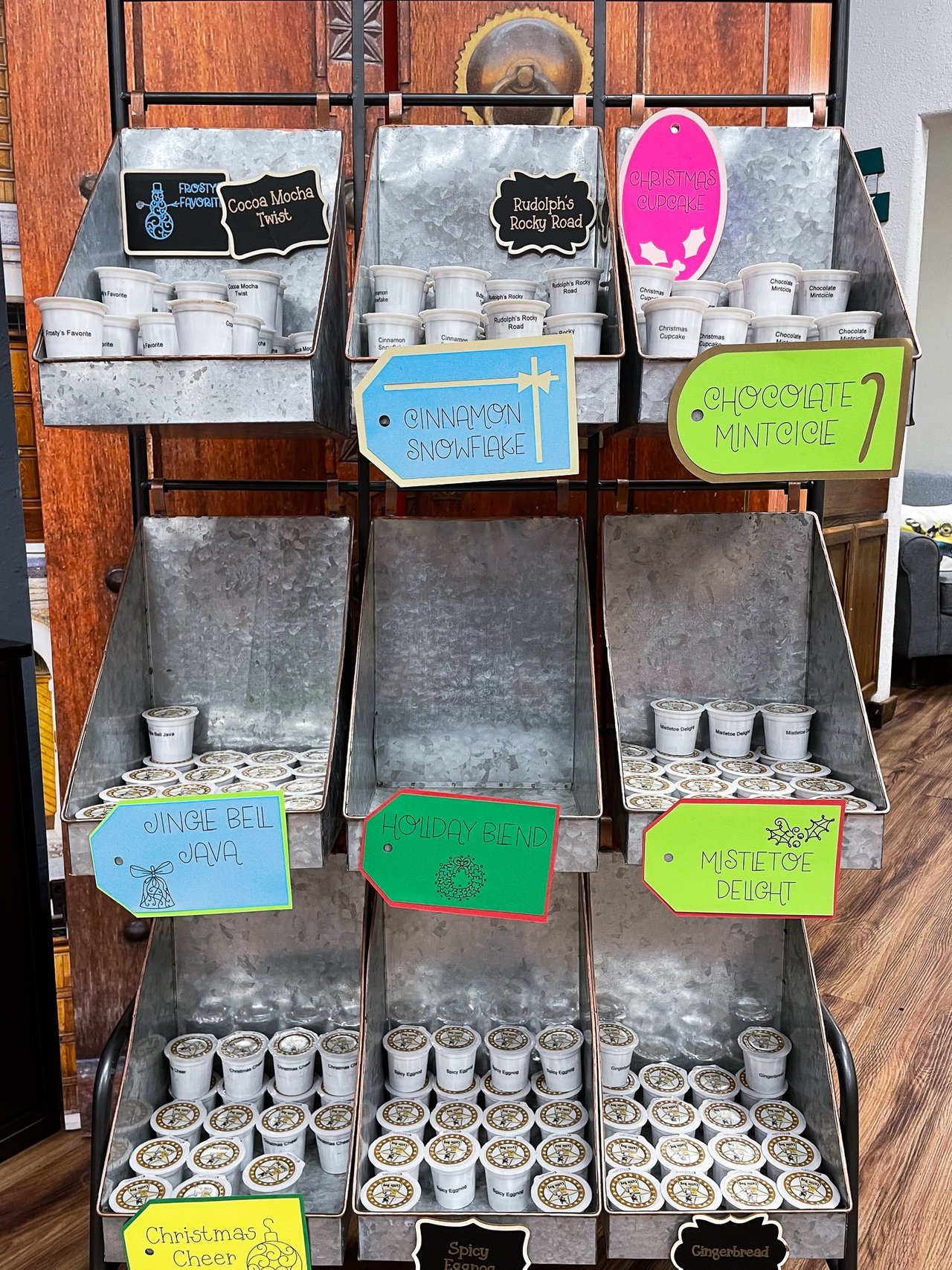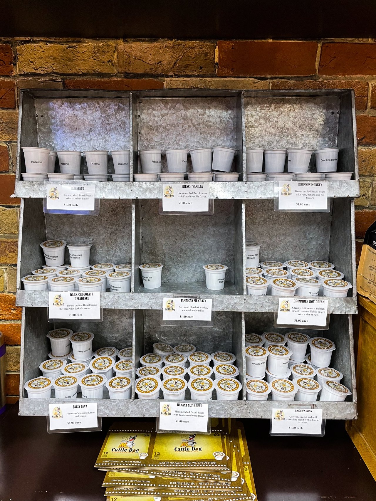 These are minions from the movie Despicable Me and have been hidden throughout Cattle Dog Coffee Roasters. This can turn into a fun scavenger hunt as you enjoy your meal and you try to find all of the minions in the restaurant. If you are someone who enjoys fresh-roasted coffee or loose leaf tea but you don’t want to go to the restaurant every day, there is a large supply of their coffee blends in both the bag form and also K-Cups for your single-cup coffee makers in addition to bags of loose leaf tea that you can purchase. We like to get the K-Cup box and fill it with various blends of coffee, just to try different types.