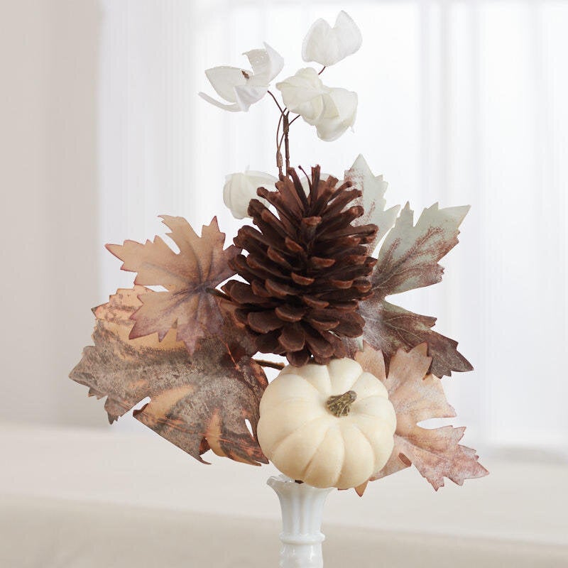 Rustic Autumn White Pumpkin and Maple Leaf Spray | $4.99 Each