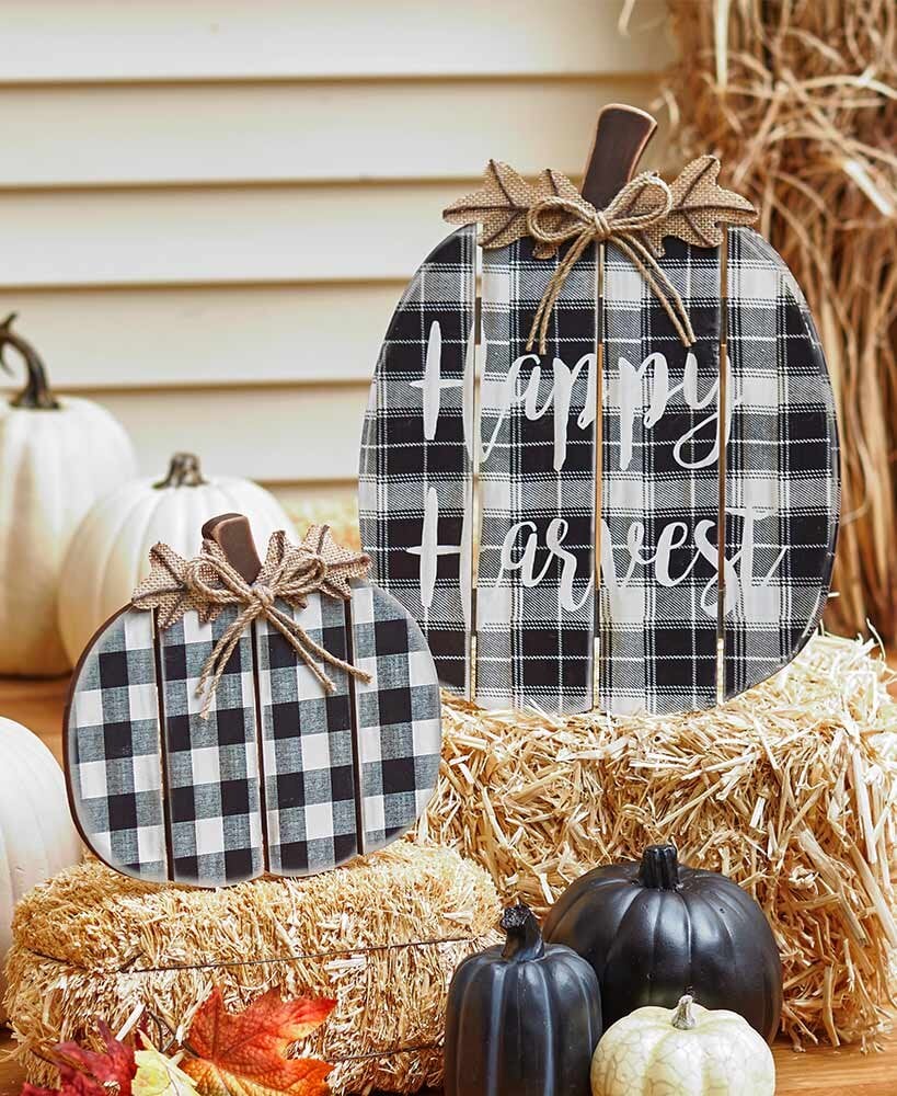 Sets of 2 Plaid Porch Pumpkins | $19.99 Per Set